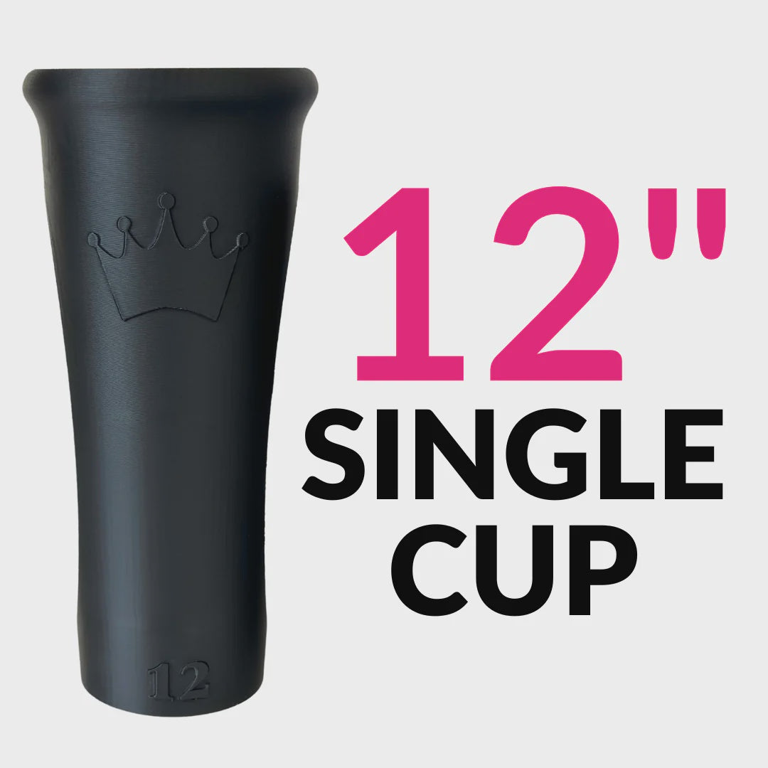 The diameter is perfect to hold each size bag. The 12 inch Piping Bag Filler is 8 inches tall and 3 inches wide. The height is purposefully chosen so that when your bag is placed in the holder and the tip is just touching the bottom, you can fill your bag to the top of the holder and this will give you the max amount of icing, and still enough room to tie off the bag. No more overfilling.