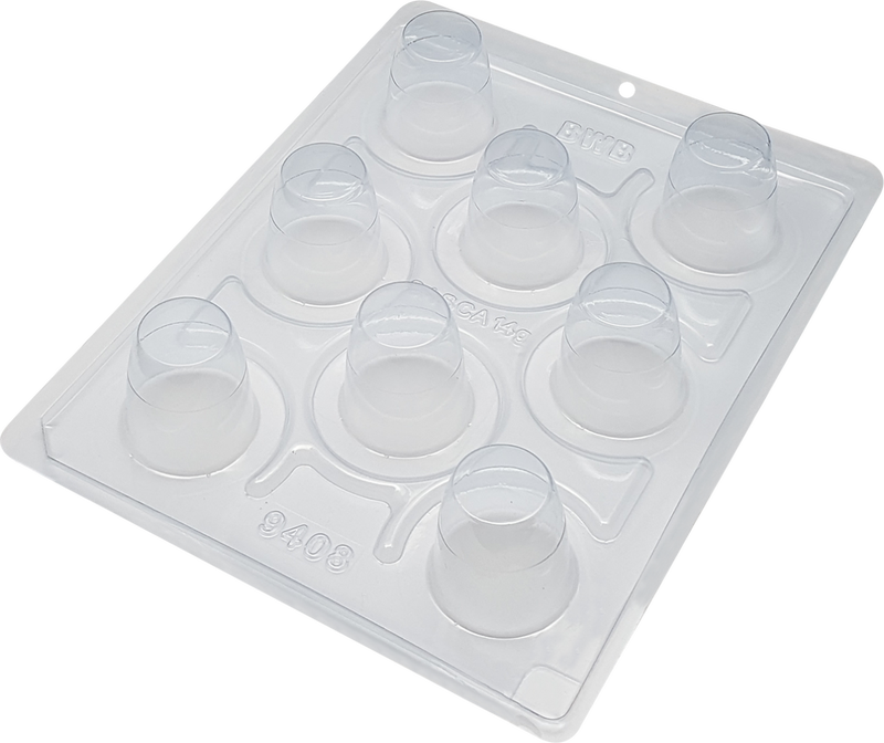 - This 3-Piece, mouse cup chocolate mold has 8 cavities. Each cavity is approximately 1 inch round at the base, 1.5 inch round at the top and 1.5 inches tall.