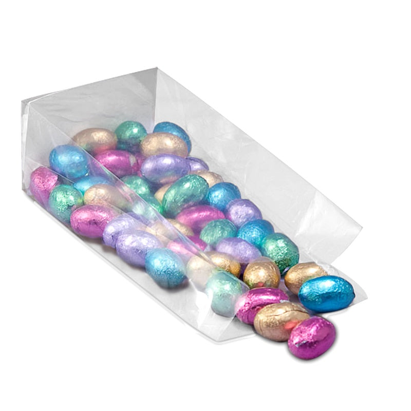 - Made of clear cello polypropylene, these bags feature a gusset side