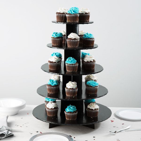 - 5-Tier, Black Cupcake Stand - show off all of your delicious treats with this disposable, black cupcake / treat stand.