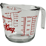 - This 2 cup liquid measuring cup is made of strong durable tempered glass allowing for maximum shock resistance. It is an essential, long-standing tool that is a must for every kitchen!