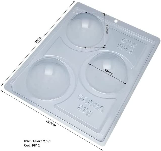 - This 3-Piece, 70MM, chocolate bomb mold is approximately 3.75" in diameter.