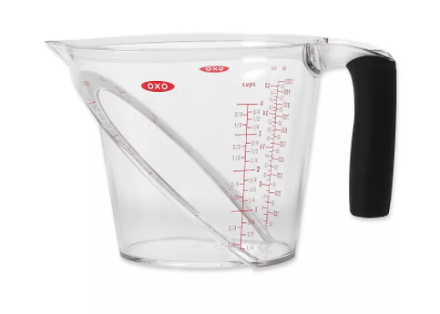 There's no need to stoop in order to get an accurate measurement when cooking. OXO's ingenious angled measuring cup allows you to read measurements from above.
