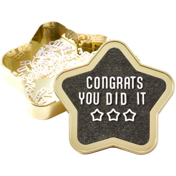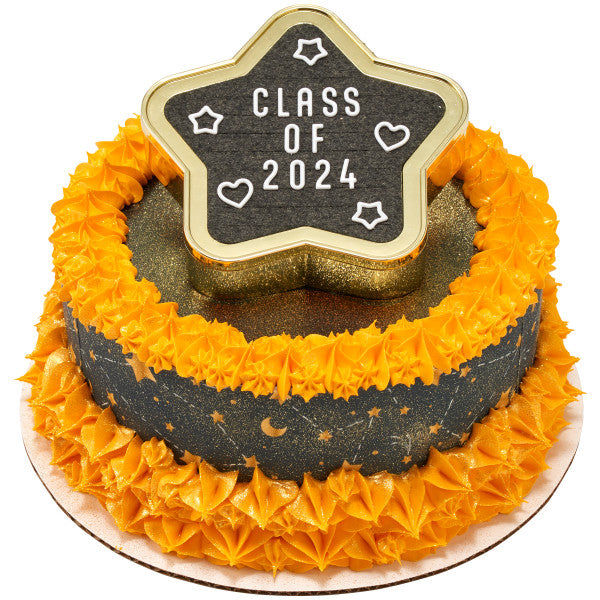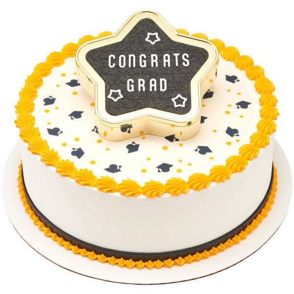 Reach for the stars, graduate! Celebrate your graduates achievements with this star grad letter board Cake Topper Set. Create a customized display of messages to inspire your graduates future endeavors. Includes various letters and symbols to create a personal message.