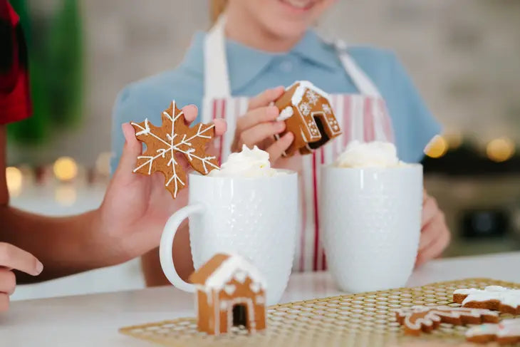 This giftable set includes 7 mini stainless steel cookie cutters in festive holiday shapes along with recipes, to help you bake delicious cookies that sit right on the edge of your mug!