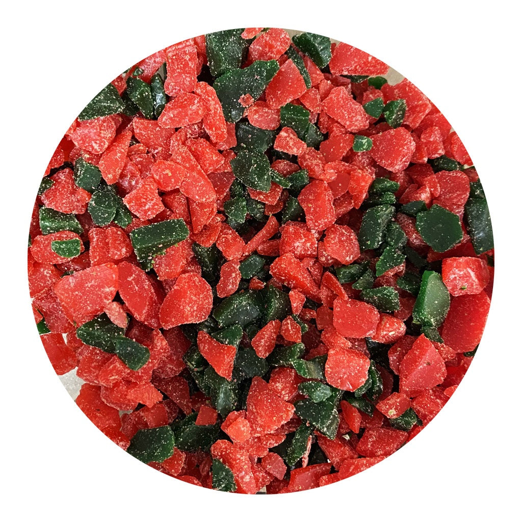 Red & Green Peppermint flavored crunch is great for making bark and other candy for your holiday gifts and parties. For candy bark, melt 3-ish pounds of chocolate candy melts with 1 pound of candy crunch. Spread out onto waxed paper and chill until set (about 30 minutes). Break into pieces and it is ready to eat and perfect for holiday gifts. Add more or less peppermint to suit your own taste. We like using the Merckens Super-White Candy