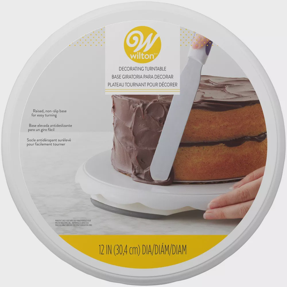Make cake decorating easier with the Wilton 12 Inch Decorating Turntable! Designed for smooth, effortless rotation, this food-safe plastic turntable helps you evenly frost, smooth, and decorate your cakes with precision.